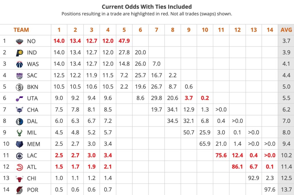 Everybody knows the deal. The Jazz can keep their 2026 draft pick if it is at eight or better. Utah would like to finish with a bottom six or worse record to have good odds at keeping the pick (96%, see the current odds table near the end of the article) and having at shot at a higher pick in the lottery (~30%-40% odds to get a top three pick if they finish with the sixth worst record). Prior to this week, the Mavs sat at eighth worst, a half-game ahead of the Jazz at seven.